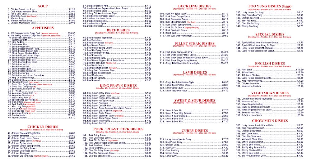 The menu at Lucky House is as diverse as it is extensive. Featuring more than 200 dishes, it covers all bases from comforting soups to flavorful mains. Customers can find enticing options like Chicken and Sweetcorn Soup, a perfect starter to warm the soul.